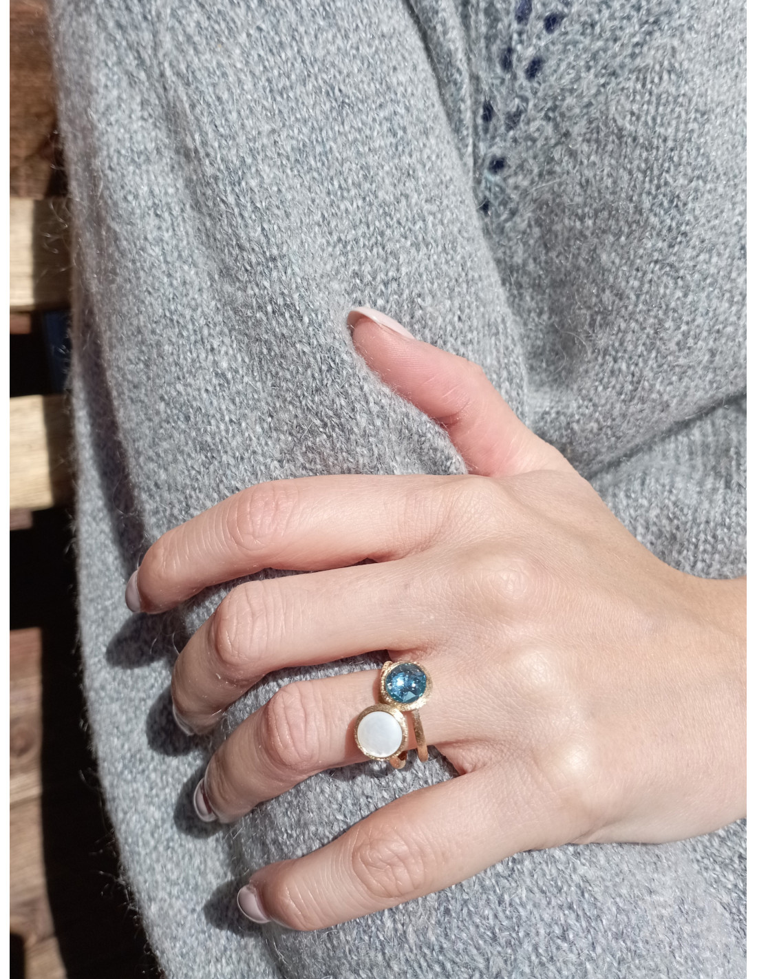 This jewel mounts a rose cut cushion Blue Topaz stone.